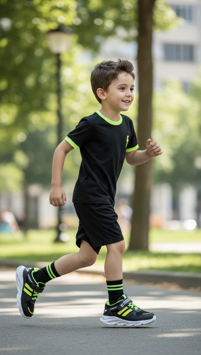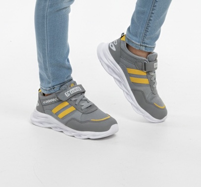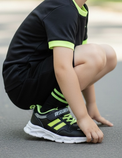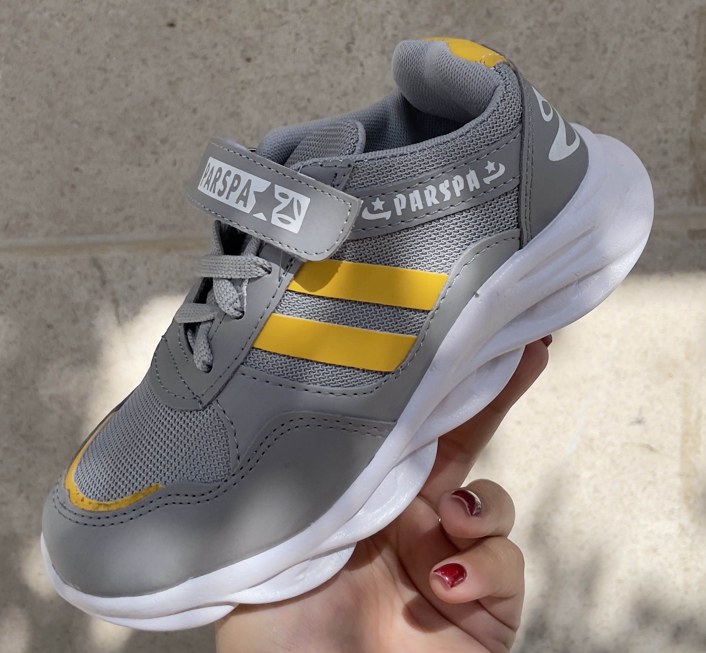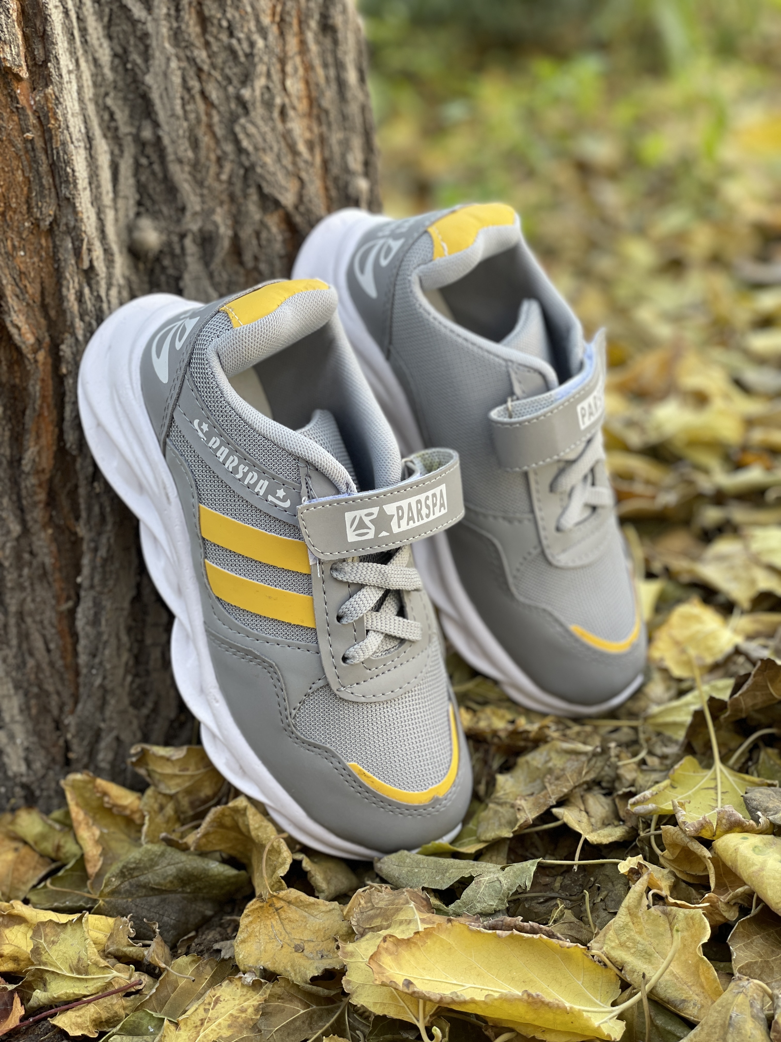 کفش اسپرت بچگانه در دو رنگ مشکی- سبز فسفری و طوسی- زرد